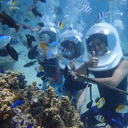 アクアウォークは、ヘルメットを被りグアムの美しい海での海中散歩が楽しめるアクティビティです。 髪や顔が濡れにくいため、眼鏡やコンタクトをつけたままでもOK。泳げない方もご参加いただけます。無料シュノーケリング体験付き! さらに、今ならアクアウォークにGoPro無料撮影付きのキャンペーン中です。(ご希望者にInstagramにてお写真をお送りいたします) パラセーリングはパラシュートをモーターボートで引っ張り、凧揚げのように空中散歩を楽しむマリンアクティビティです。 初めての方でもブランコに乗れる体力があれば楽しめますので、お子様からご年配の方まで、幅広い年齢層の方に楽しんでいただけます。