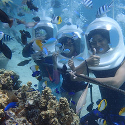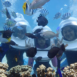 【2026年度の料金改定について】 ・2月1日(日)以降は、大人:$63 → $70 子供:$63 → $70に変更となります。 アクアウォークは、ヘルメットを被りグアムの美しい海での海中散歩が楽しめるアクティビティです。 髪や顔が濡れにくいため、眼鏡やコンタクトをつけたままでもOK。お子様からご年配の方まで、泳げない方もご参加いただけます。無料シュノーケリング体験付き! ウエットスーツ、アクアブーツは無料レンタルなので、タオル持参と水着着用のみでご参加いただけます。対象年齢:8歳〜。 さらに、今ならGoPro無料撮影付きのキャンペーン中です。(ご希望者にInstagramにてお写真をお送りいたします)